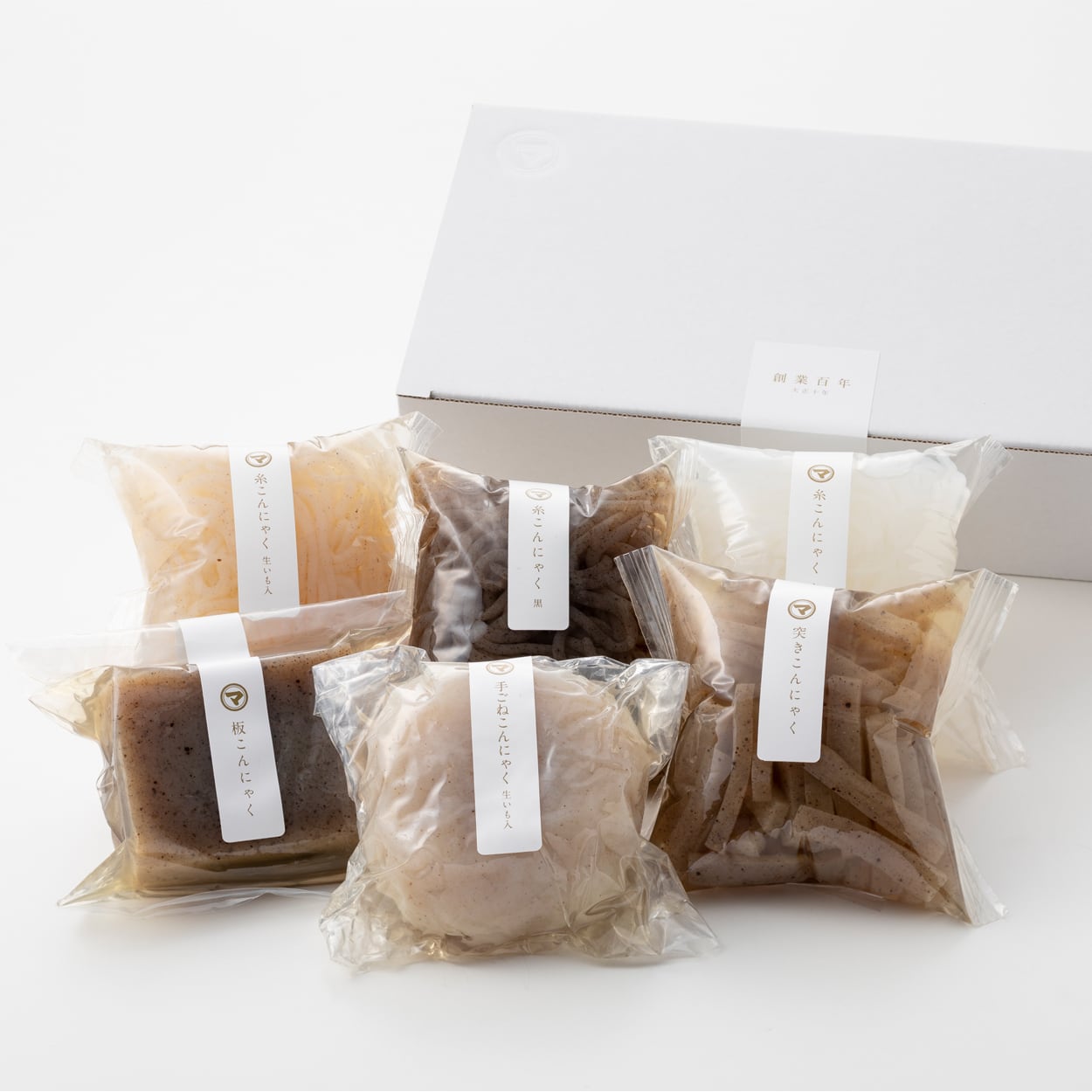 定番の6種類のこんにゃくが入った箱入りセットです。